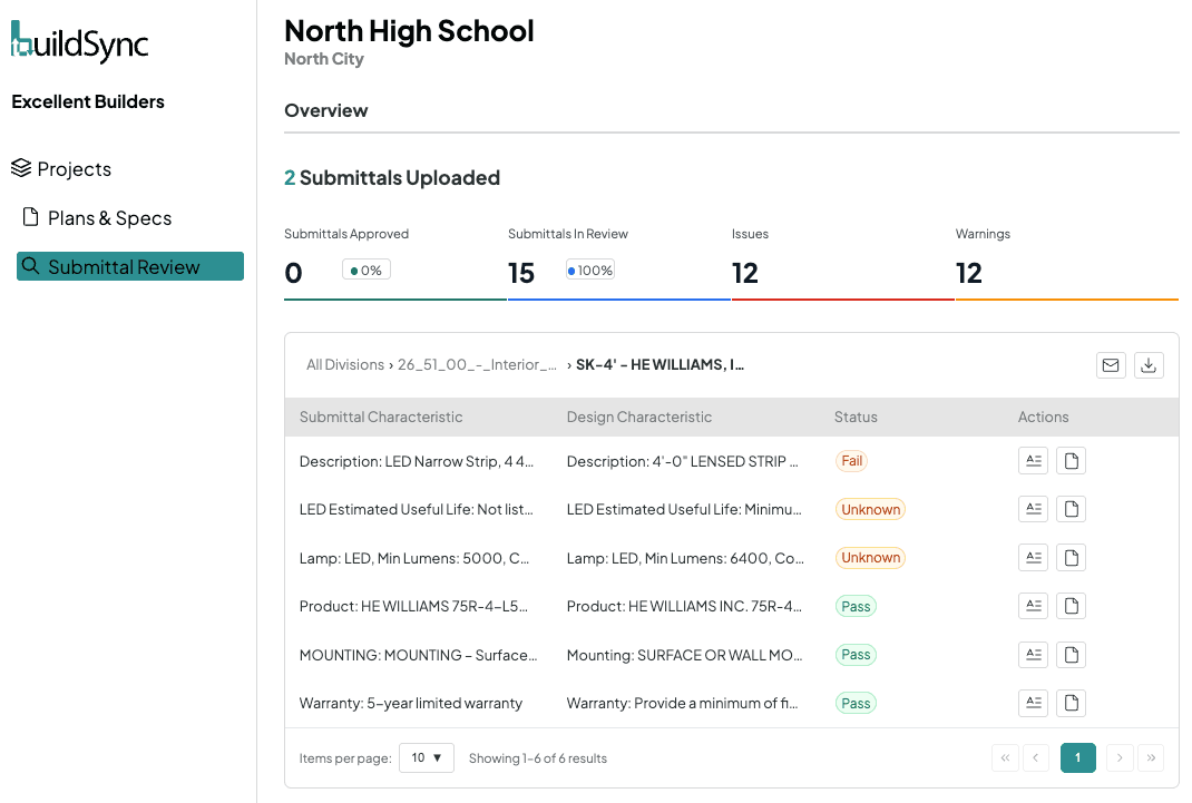 BuildSync is the first stop a submittal makes in our workflow once it is turned in by a subcontractor. The report and markup generated by BuildSync then helps our reviewer navigate through the submittal as they perform their own review prior to sending the submittal off to the architect and engineer.