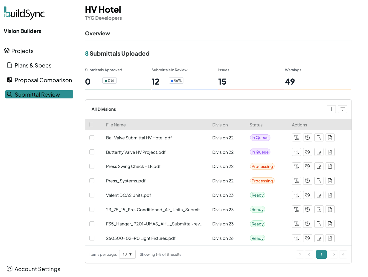 We have seen an improvement in our review times and acceptance rates. BuildSync's ability to review product data submittals has allowed us to focus more attention and energy to larger submittals and shop drawings.